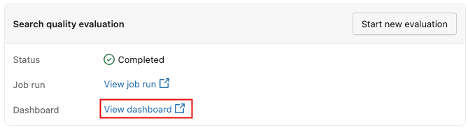 Para iniciar o processo, clique em Avaliar a qualidade da pesquisa na página do índice de pesquisa vetorial. Nenhuma configuração é necessária, pois os valores default são preenchidos previamente com base nos metadados do seu índice.