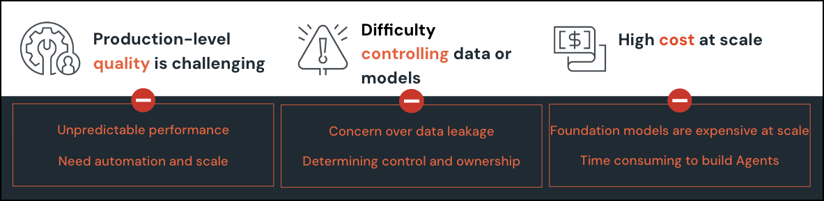 非常に有能な LLM を中核に据えていても、本番運用グレードの生成AI アプリは、主に次の 3 つの領域で課題に直面することがよくあります。