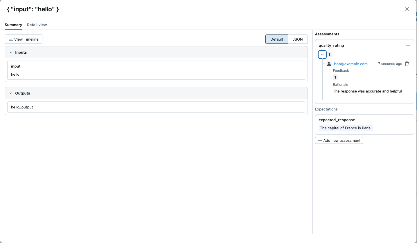 Como desenvolvedor que está criando aplicativos GenAI, você precisa de uma maneira de rastrear suas observações sobre a qualidade dos resultados do seu aplicativo. O MLflow Tracing permite adicionar feedback ou expectativas diretamente aos traços durante o desenvolvimento, oferecendo uma maneira rápida de registrar problemas de qualidade, marcar exemplos bem-sucedidos ou adicionar notas para referência futura.