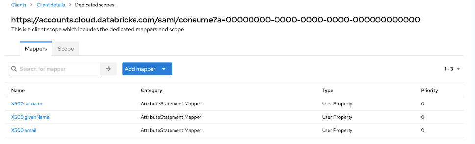 entityIDno elementoEntityDescriptor(por exemplo,https://my-idp.example.com/realms/DatabricksRealm). - A tag